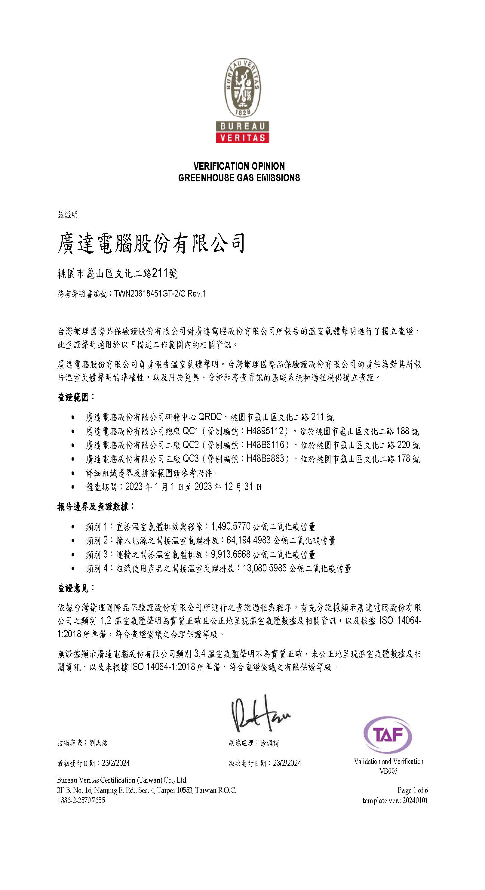 - 2024溫室氣體盤查確信意見書